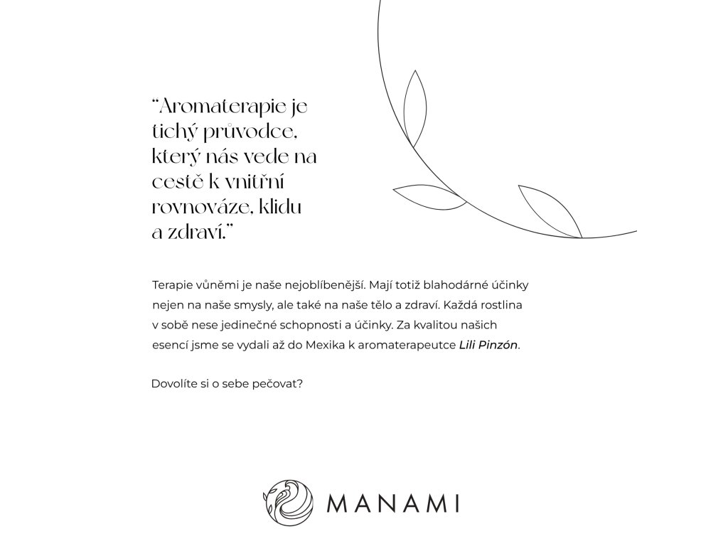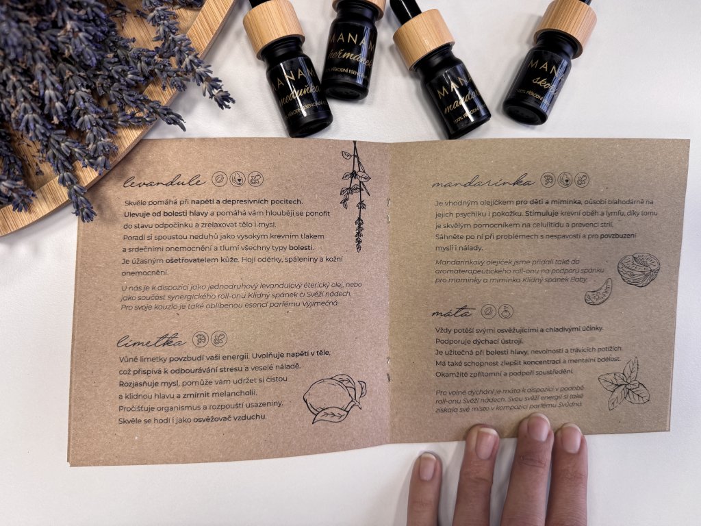 Kdo nás znáte, víte, že milujeme detaily, a že se značka MANAMI nese v nádechu přírodna a krásy. Proto jsme i aromaterapeutickou brožurku ladili v duchu minimalismu a elegance.