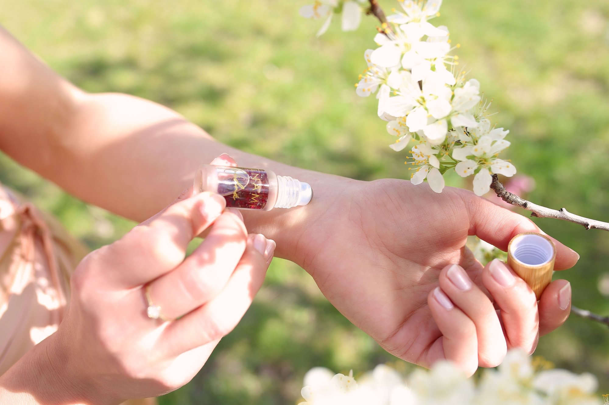 Na hydratované a teplé pokožce se vůně uvolňuje pomalu a vydrží déle. Suchá kůže ji naopak může „vypít“ dříve. Proto doporučujeme nanášet parfém po sprše, když je pokožka ještě lehce zvlhčená nebo ošetřená přírodním olejem. Případně ji před nanesením přírodního parfému hydratujte například květovou vodou.
